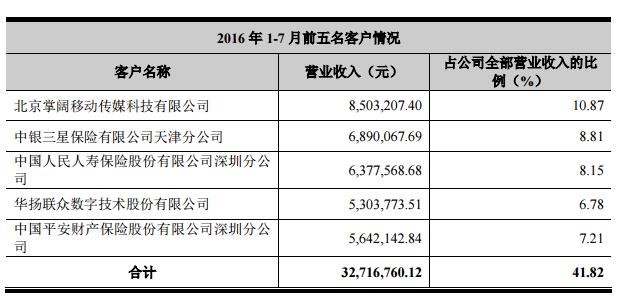 报告期内,活力天汇主营业务收入主要来源于出行服务带来的票务与附加产品的销售、场景电商中产品的销售以及通过开屏和频道栏目合作等方式向广告主收取的广告收入。2016 年 1-7 月、2015 年、2014 年前五大客户占营业收入的比重分别为 41.82%、66.65%和 32.32%。
