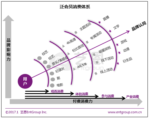 总结:2016年中国视频付费市场聚变,各大视频着力布局“付费生态体系”的商业模式开始显现其优越性。优势资源将不断聚合于强者,市场的竞争也将继续升级,除了会员纳新外,基于精耕内容及完善会员服务体系之下的用户内容价值深挖是下一阶段市场博弈的关键。未来,视频付费消费将呈现多维消费模式,以平台为基础,打通用户不同消费层级,从单一的内容消费转向泛娱乐产业消费,与其伴随的是平台品牌的建立和用户对平台品牌价值的认同。