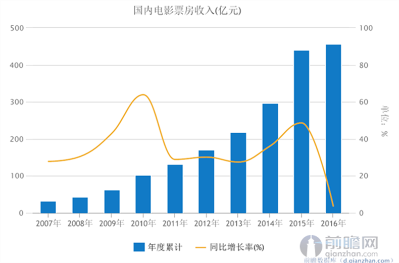 2002年至2014年,中国电影票房从9.5亿元人民币增至297亿元,年复合增长率接近35%.2015年,国产片的爆发带动票房增长近50%.高增长持续到2016年的一季度,春节档的狂欢之后,暑期档、国庆档先后失守,全年以457亿票房收官,同比增长率不到4%。2017年的票房将会呈现怎样的走势?有没有可能再现2015年的疯狂?下面笔者就来介绍申万菱信的测算方法。
