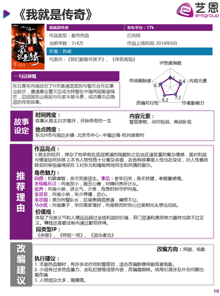 《艺恩IP推荐榜》针对当前市场上所有尚未对外售出版权的IP作品,包括网络小说、出版文学以及漫画作品等内容进行评估、筛选与分析,在结合行业前沿信息研究的基础上,以每月10部的体量进行推荐。