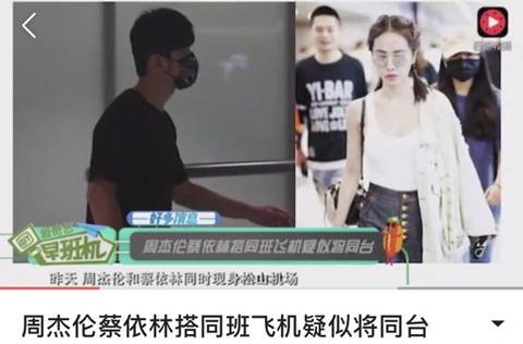 周杰伦被拍到现身松山机场,巧的是蔡依林也刚好搭同班飞机,但是为了避免尴尬两人分开走了。
