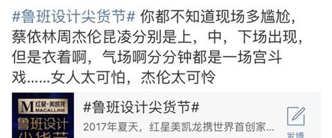 即将在9月1日优酷首播的晚红星美凯龙“鲁班设计尖货节”中,蔡依林周杰伦昆凌就首次同台,这场面简直尴尬又壮观。