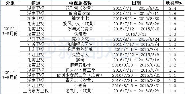 注:表中各剧收视率均为在暑期7.1-8.31期间的数据,并非整部剧。